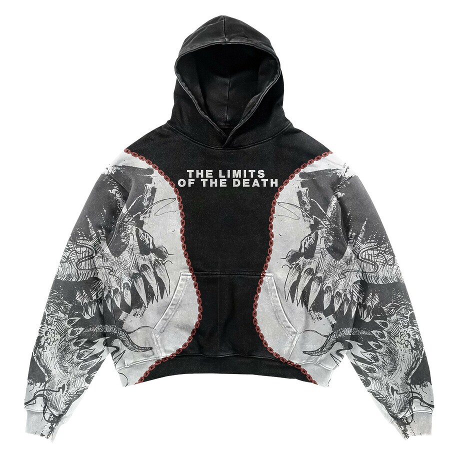 Чёрно-серое худи с принтом Worksofrex и карманом кенгуру
