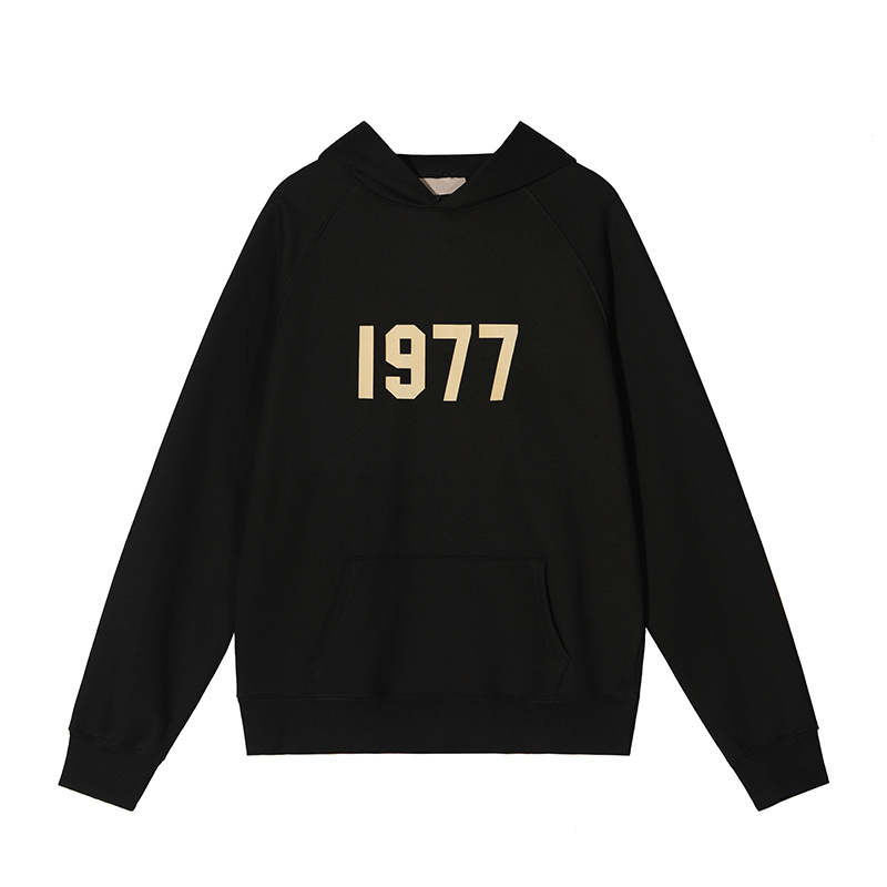 Черное худи essentials с бежевыми цифрами "1977" на груди