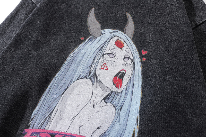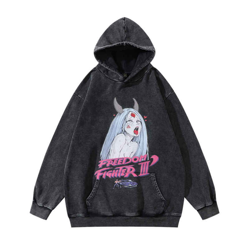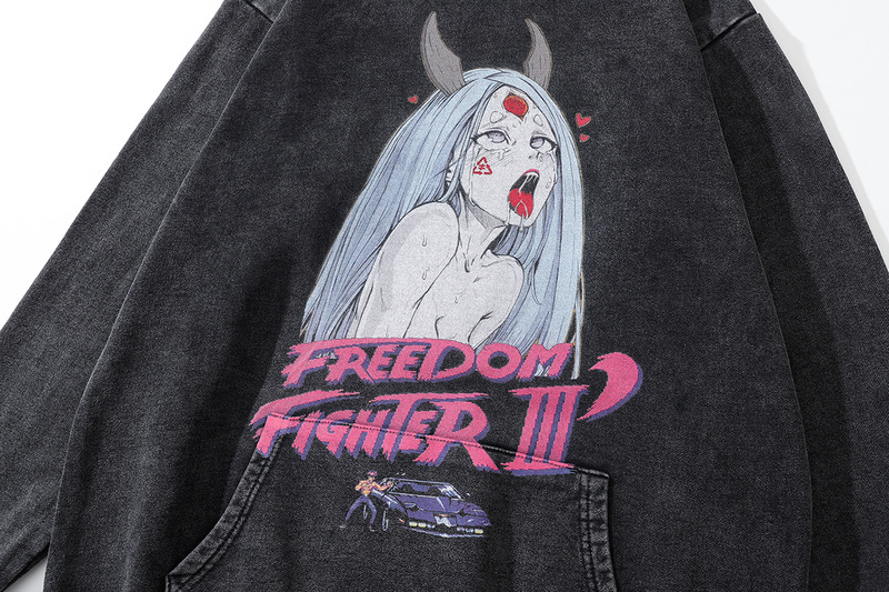 Чёрное худи с капюшоном TKPA с принтом в японском аниме стиле