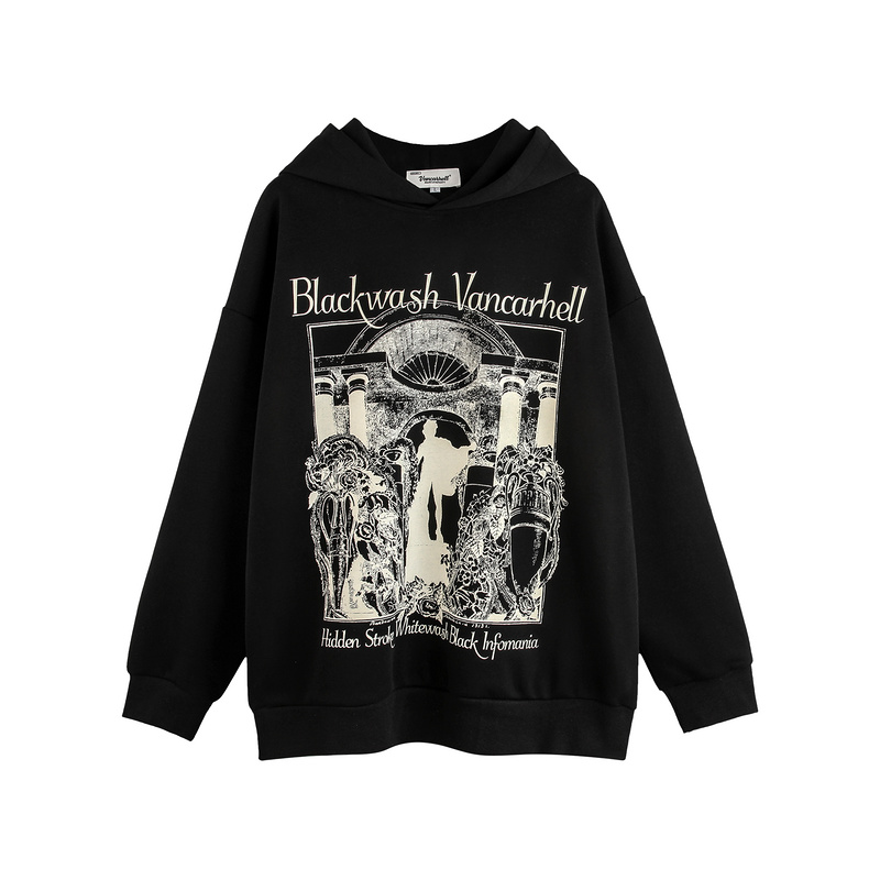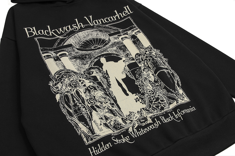 Черное худи с печатью на груди и спине бренда VANCARHELL