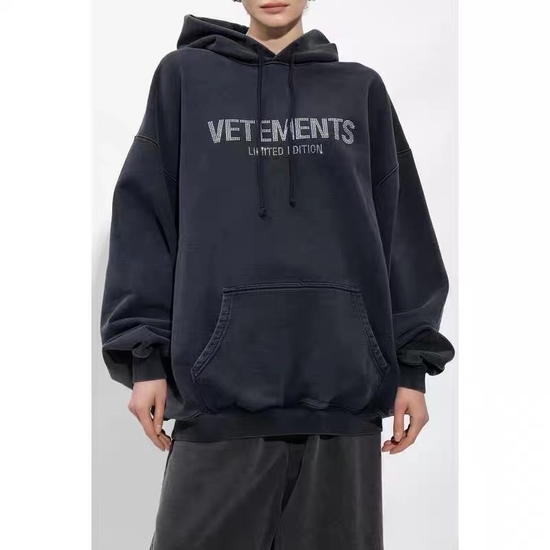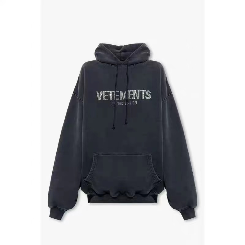 Черное худи VETEMENTS с логотипом из страз и карманом