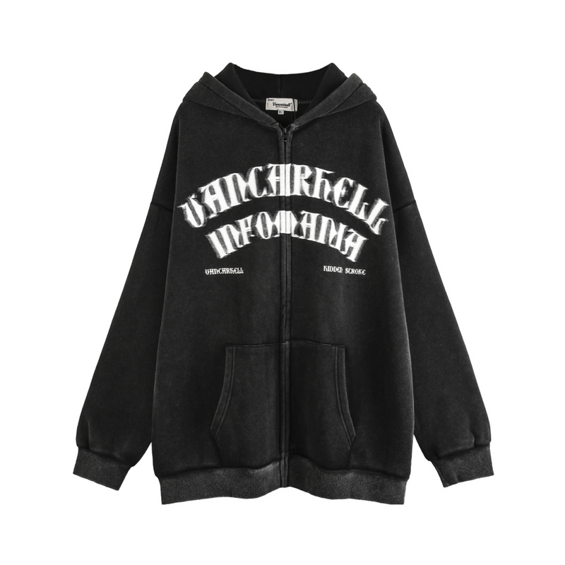 Черное легкое зип худи VANCARHELL с печатью "Помехи"