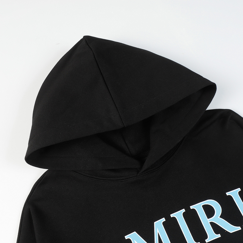 Чёрное оверсайз фасона худи с брендовой надписью AMIRI