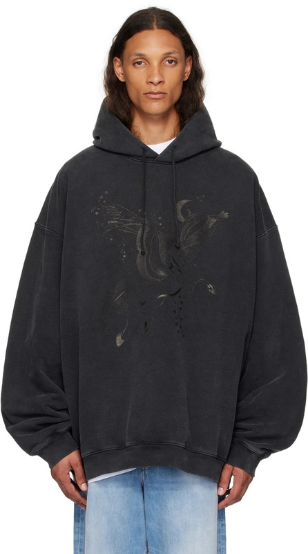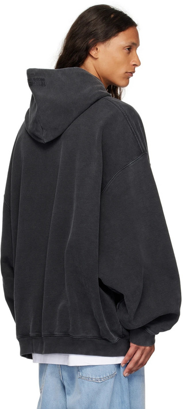 Чёрное оверсайз потертое худи с капюшоном и принтом от Vetements