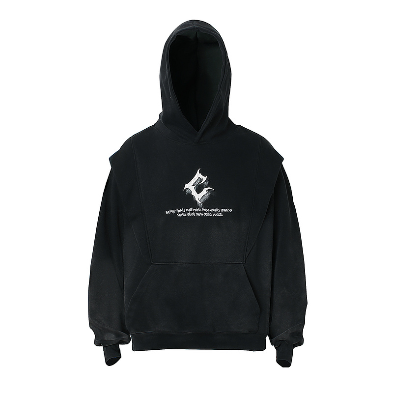 Чёрное с двойными рукавами объёмное на каждый день худи GLFS