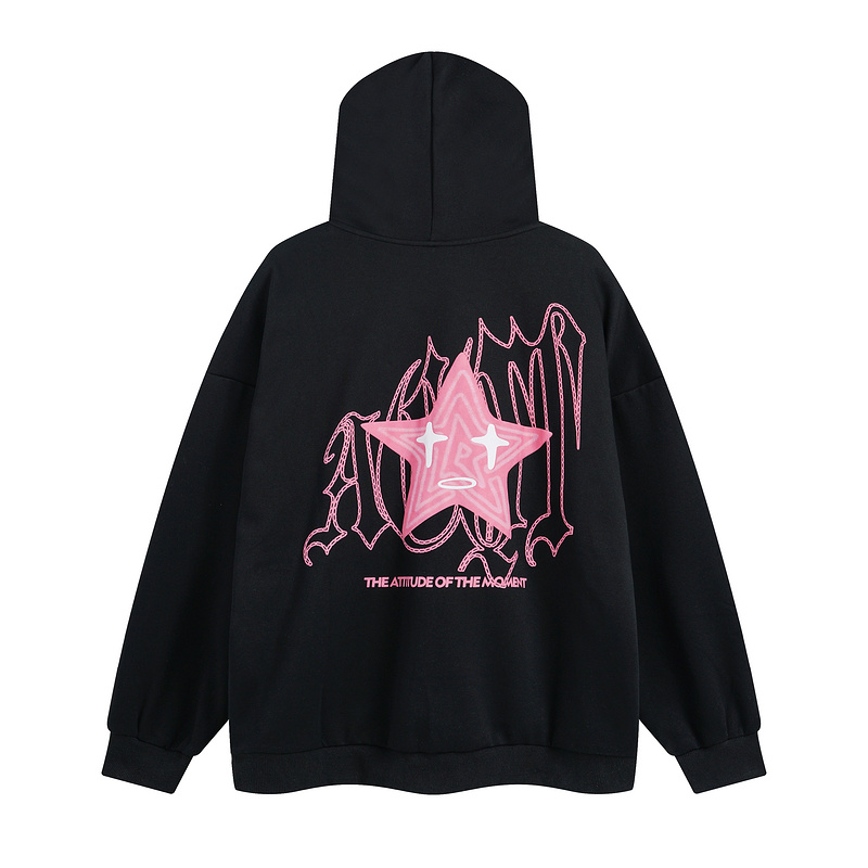 Черное с розовым принтом оригинальное худи бренда ACQT