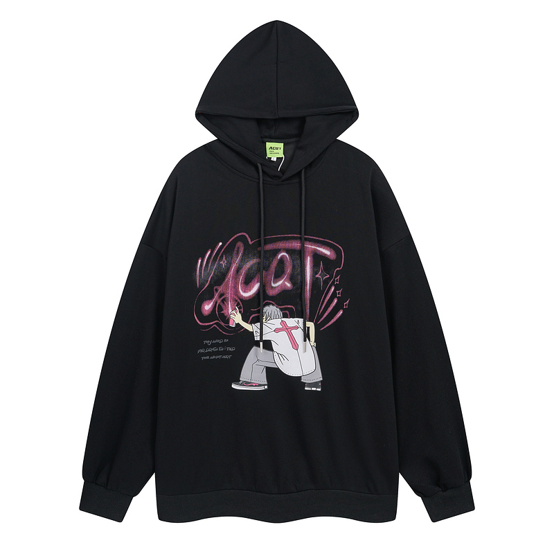 Черное стильное худи ACQT с логотипом и качественным принтом