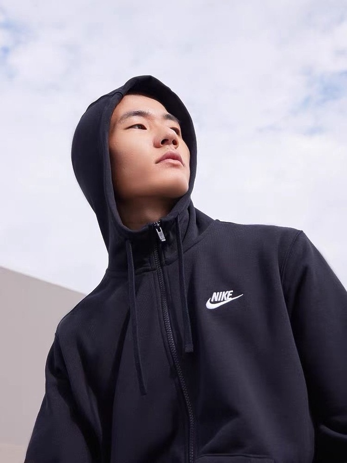 Черное стильное зип худи Nike с логотипом бренда на груди