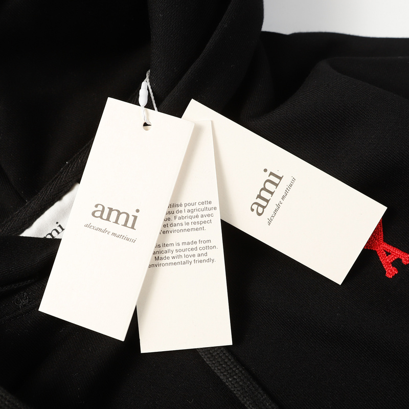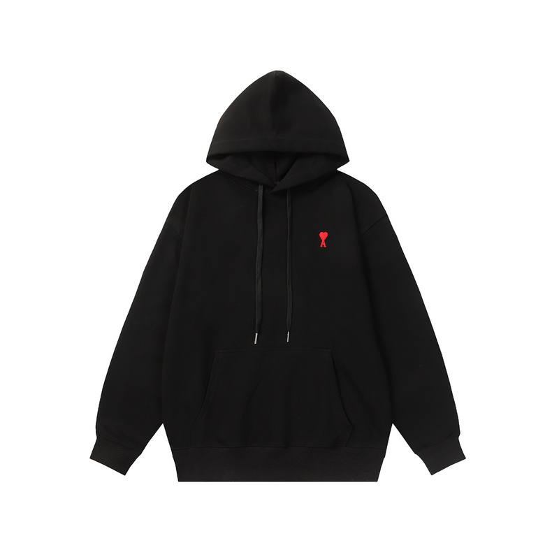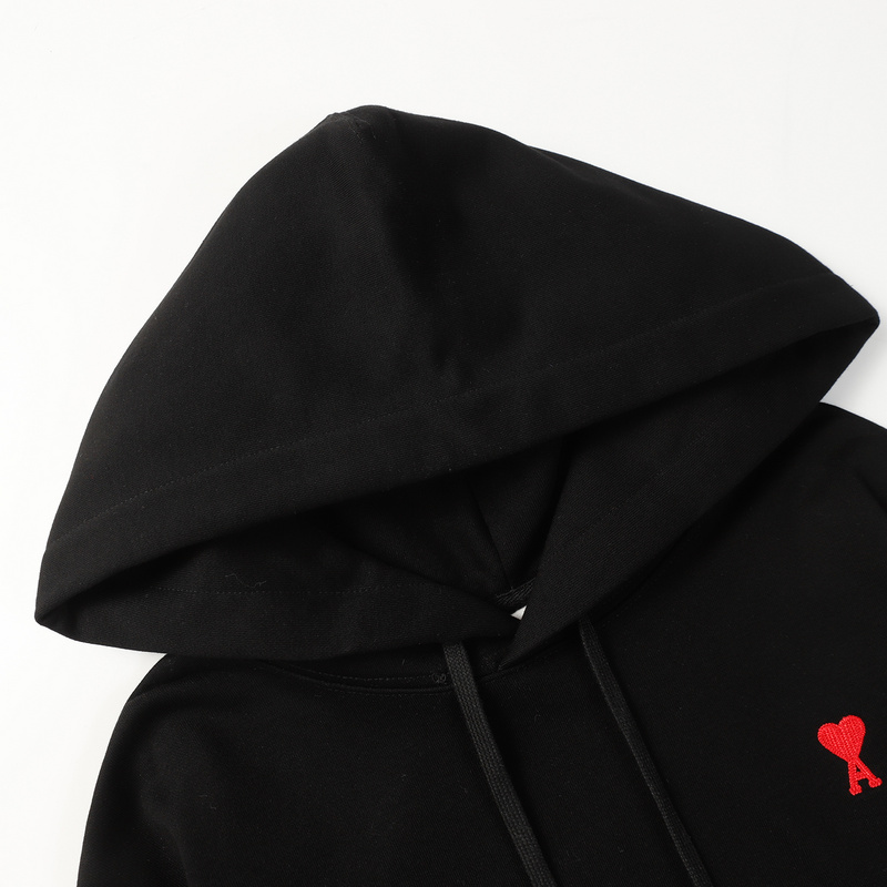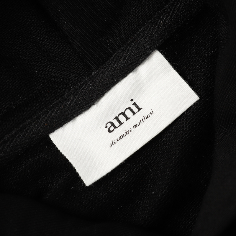 Чёрное универсальное худи AMI с капюшоном и нашитым карманом