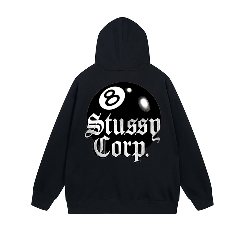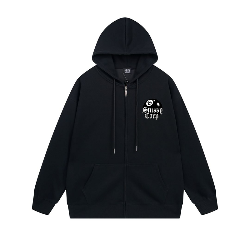 Черное зип худи Stussy с качественной молнией карманами и принтом