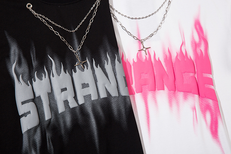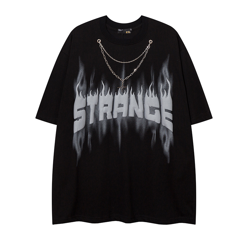 Черного цвета футболка KIRIN STRANGE с подвеской и надписью