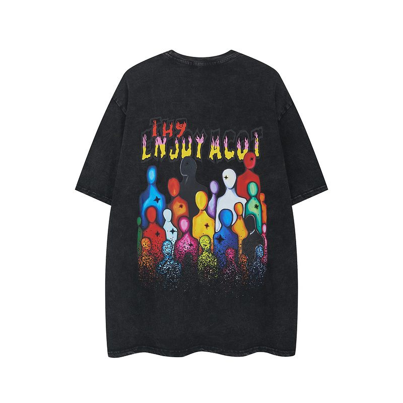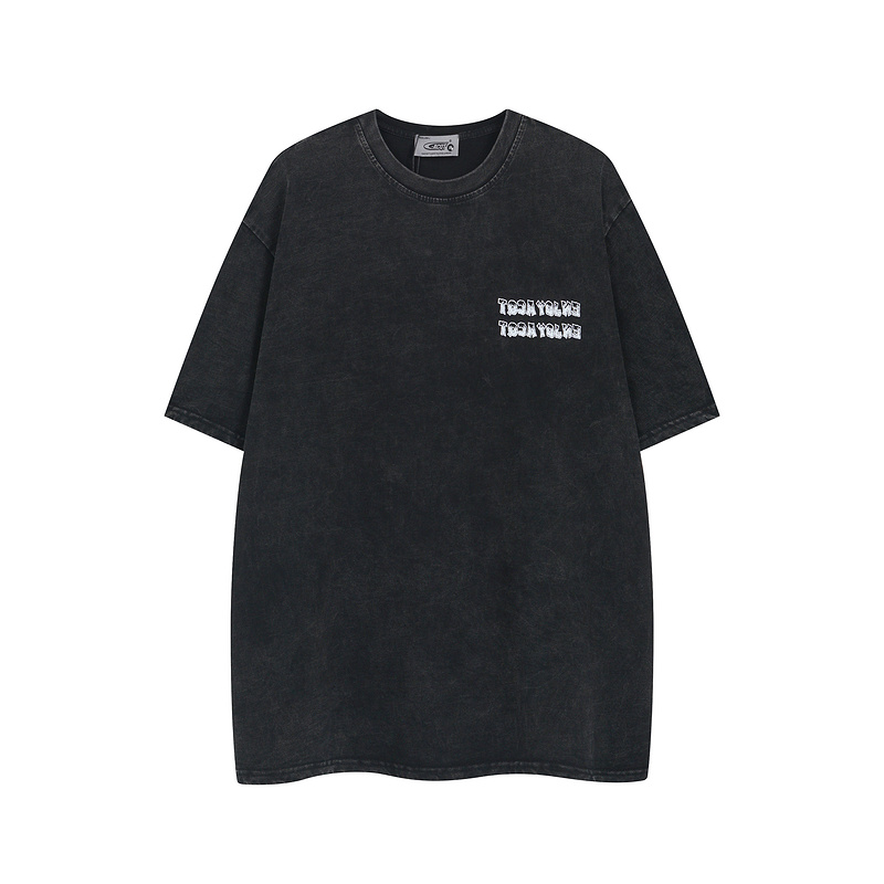 Черного цвета футболка с принтом на спине и надписью на груди ACQT