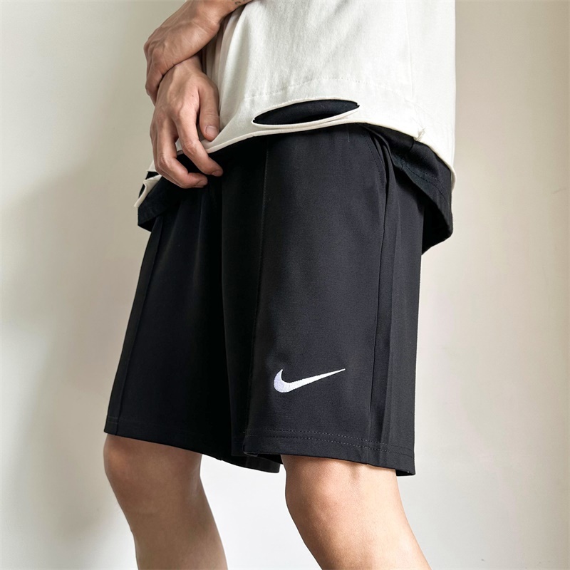 Чёрные Nike шорты на резинке со шнурком и вышитым логотипом