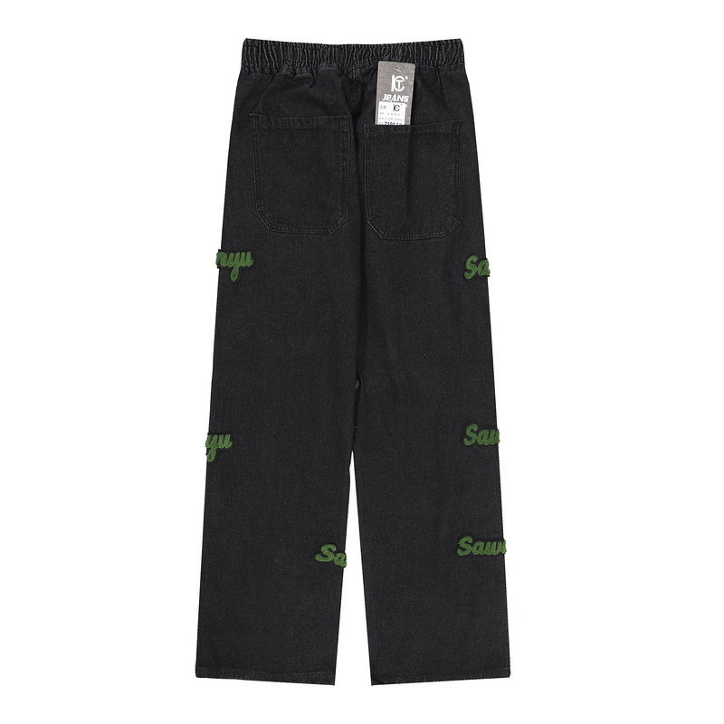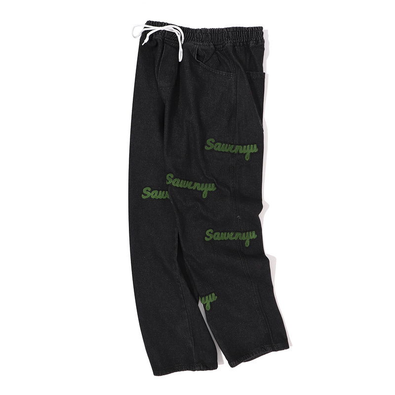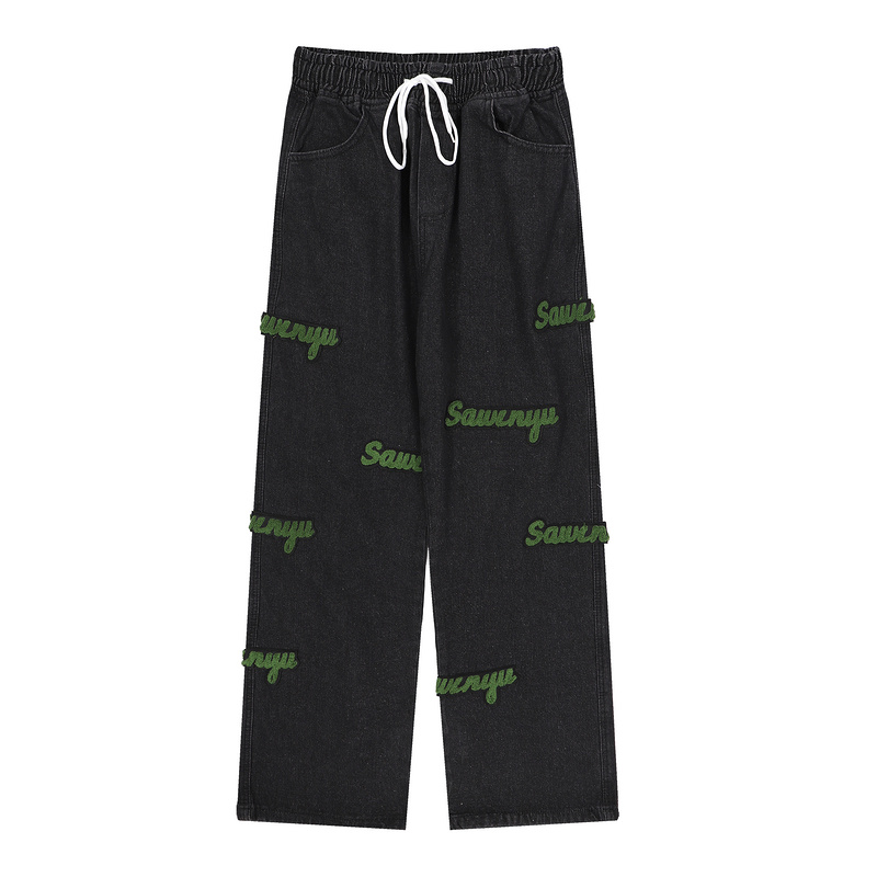 Черные с зеленой надписью DYCN джинсы свободного кроя