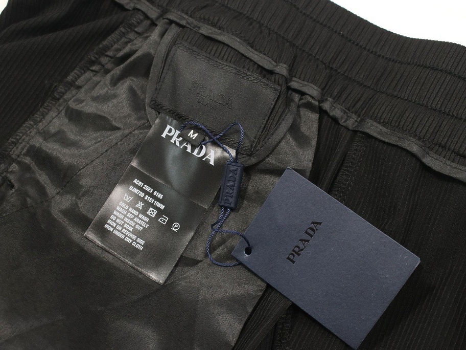 Черные стильные штаны Prada на эластичной резинке со шнурком