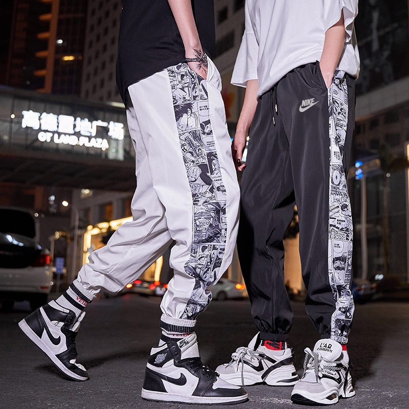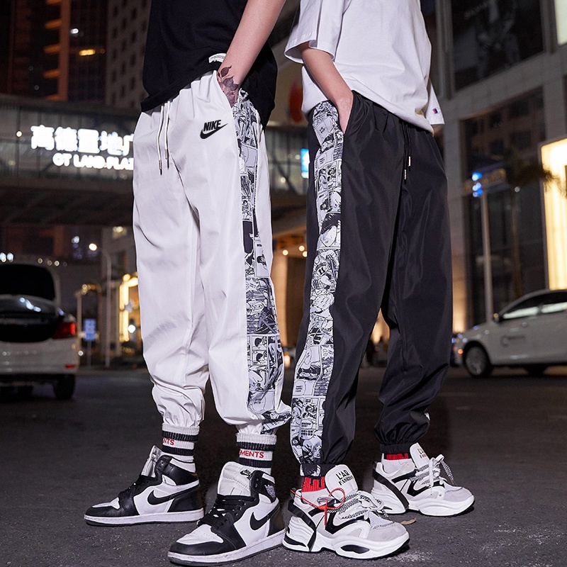 Чёрные стильные спортивки Nike с принтом выполнены из полиэстера