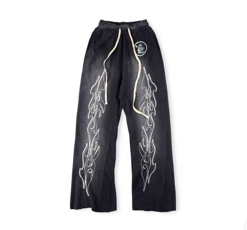 Чёрные выстиранные с принтом спортивки Hellstar выполнены из хлопка