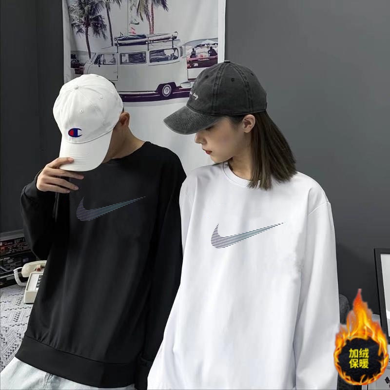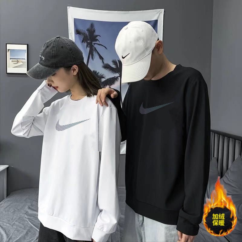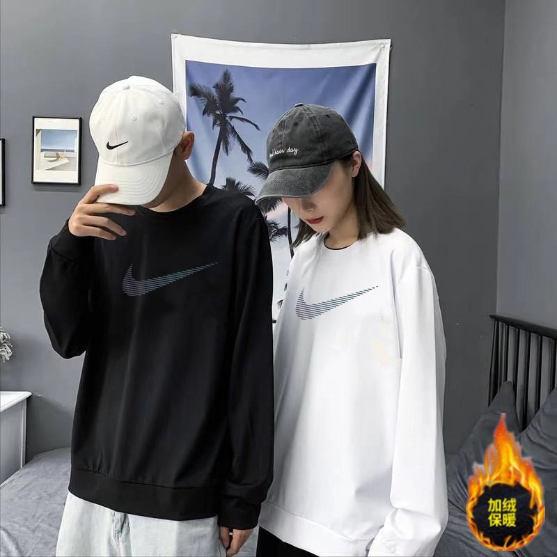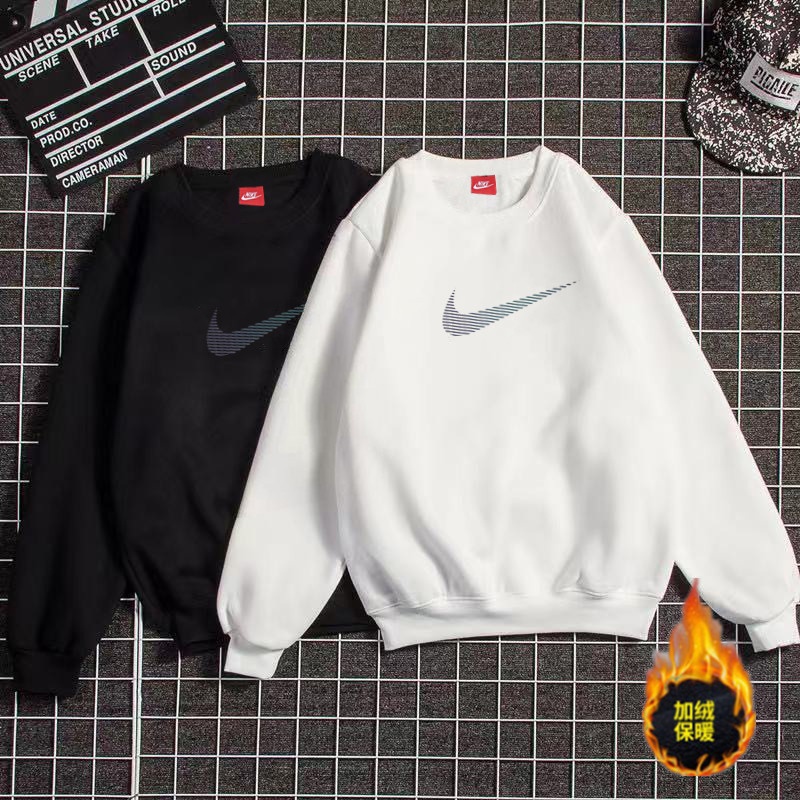 Чёрный и белый утепленный свитшот с принтом Nike SWOOSH