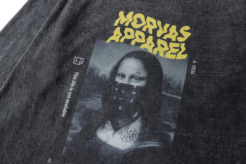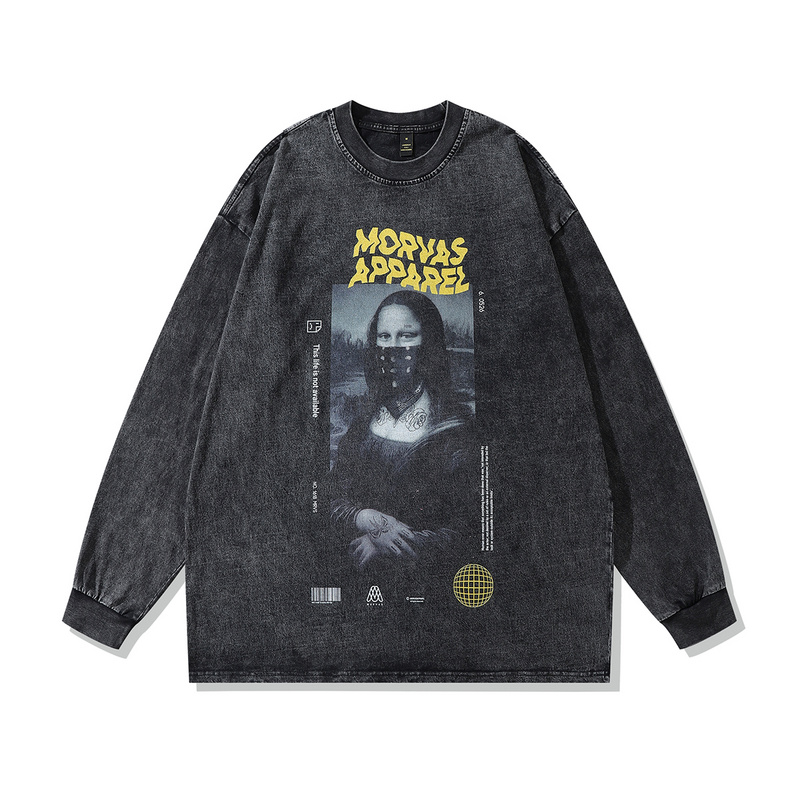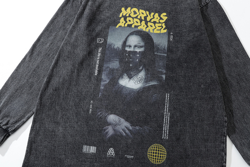 Чёрный лонгслив от бренда TKPA с принтом "Мона Лиза в бандане"