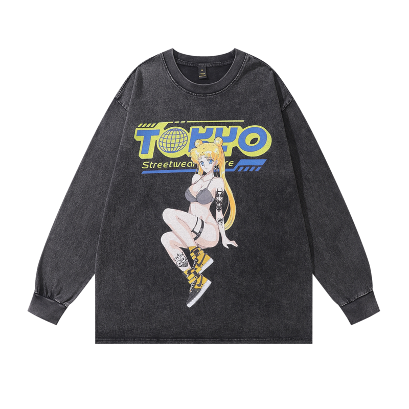 Чёрный с рисунком "Сейлор Мун" от бренда TKPA лонгслив повседневный