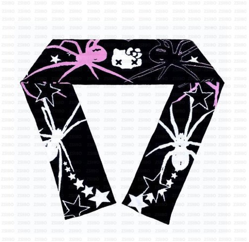Чёрный с розовым и белыми пауками мягкий шарф вязанный унисекс