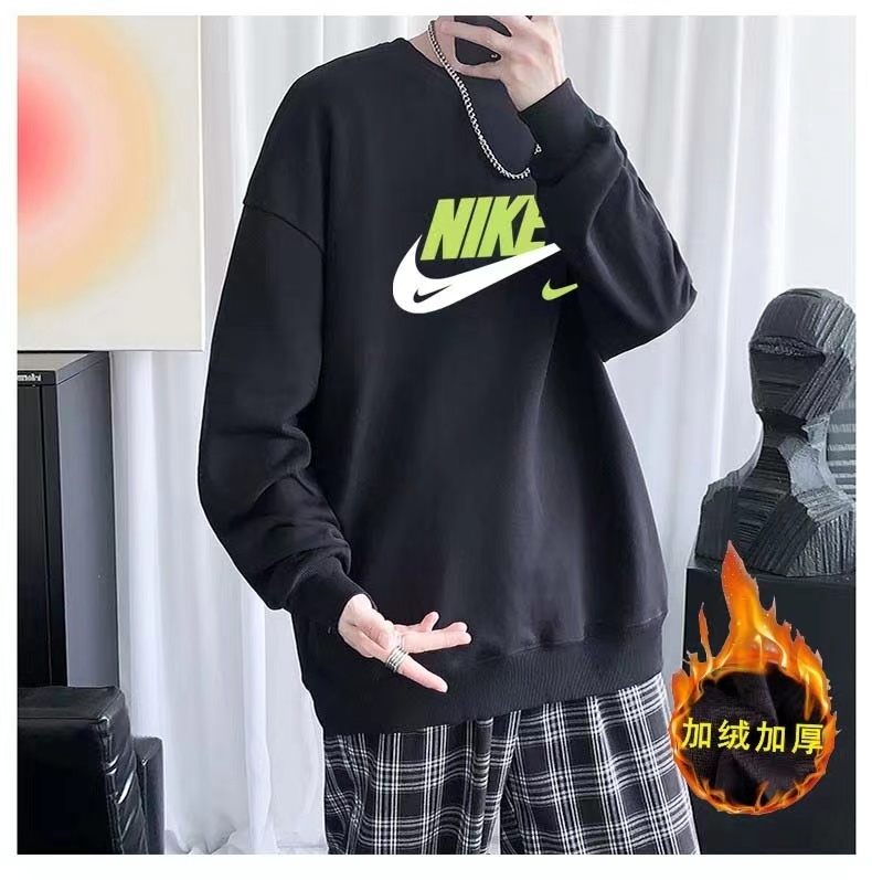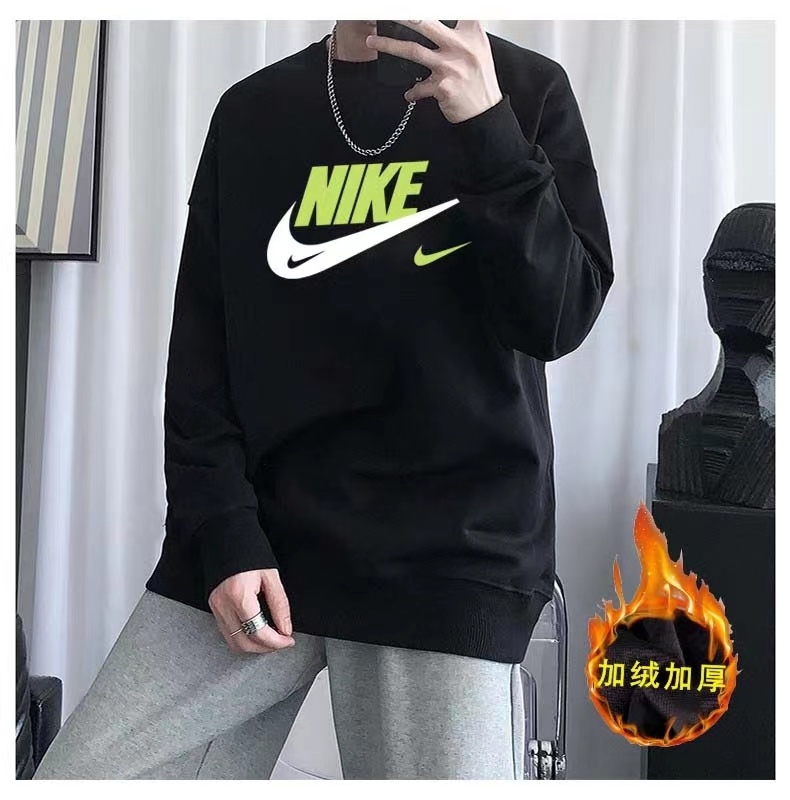 Чёрный утепленный свитшот с салатовым принтом Nike SWOOSH