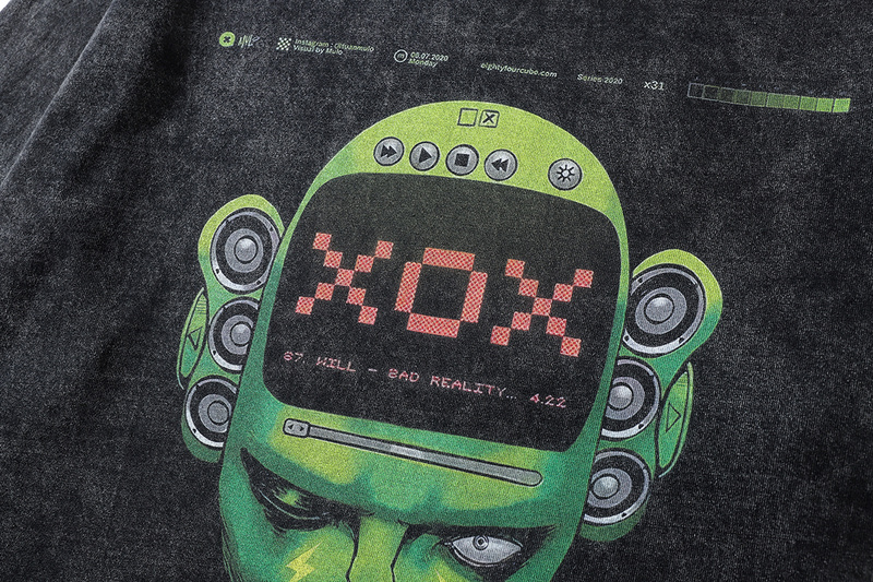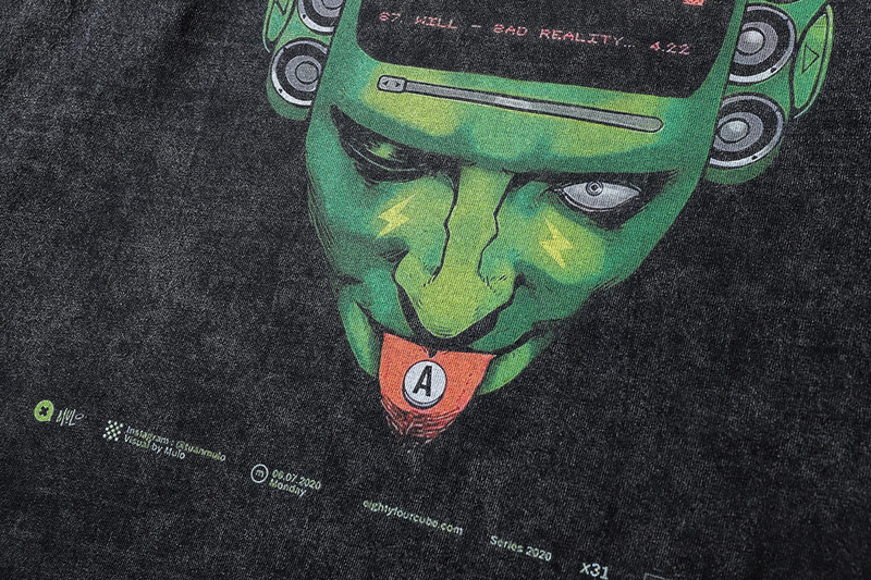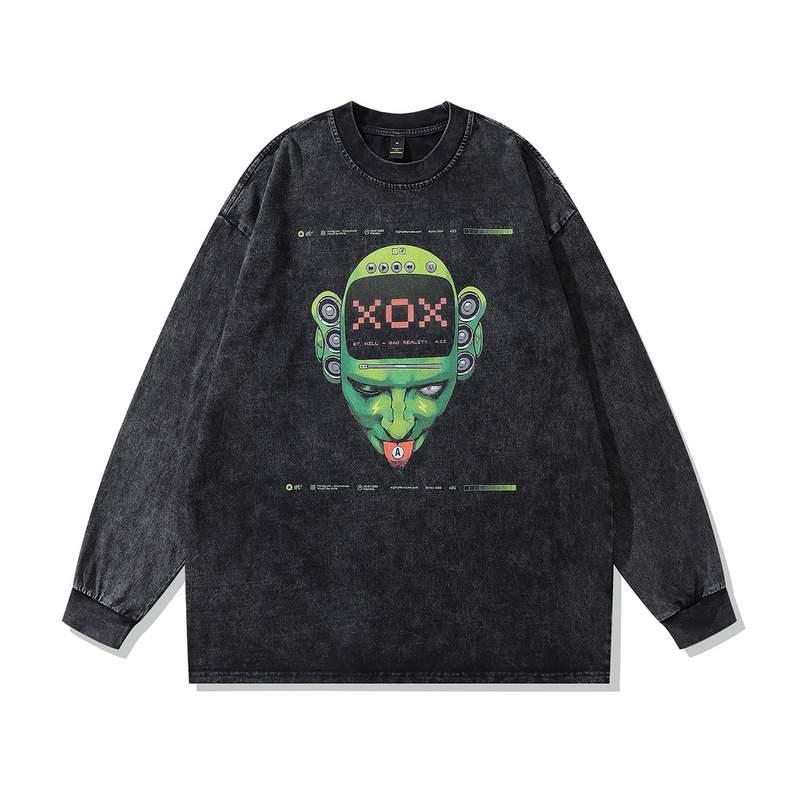 Чёрный выстиранный лонгслив TKPA стильный принт на груди