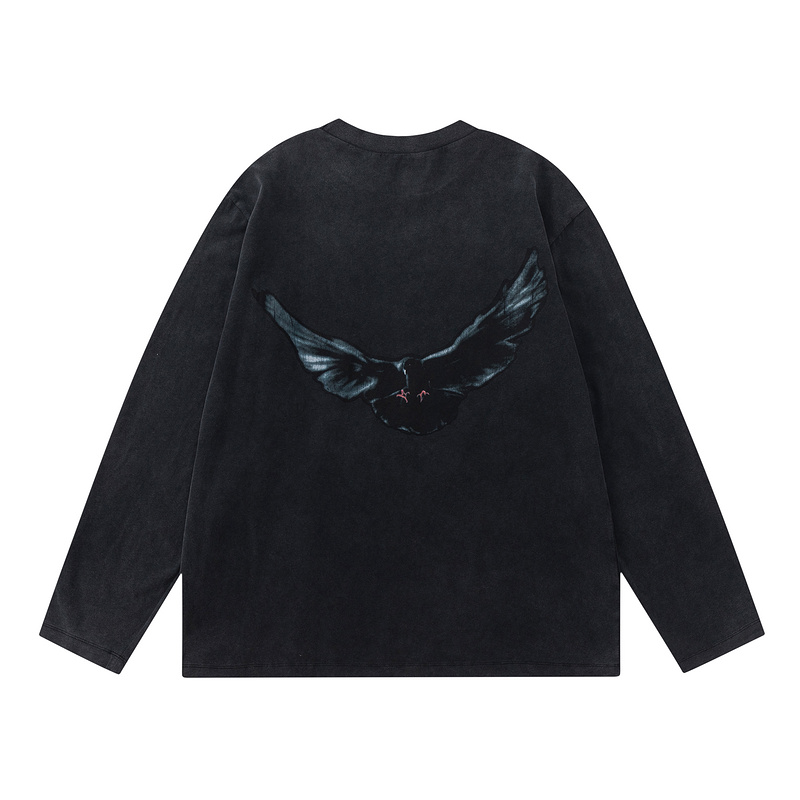 Чёрный YEEZY x Gap лонгслив с принтом на спине "Голубь"
