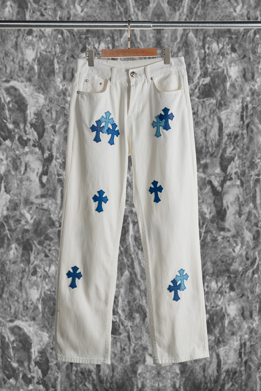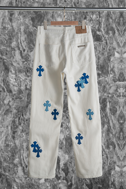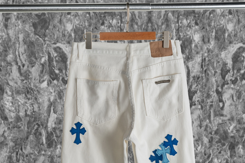 Chrome Hearts джинсы белого цвета с синими кожаными крестами