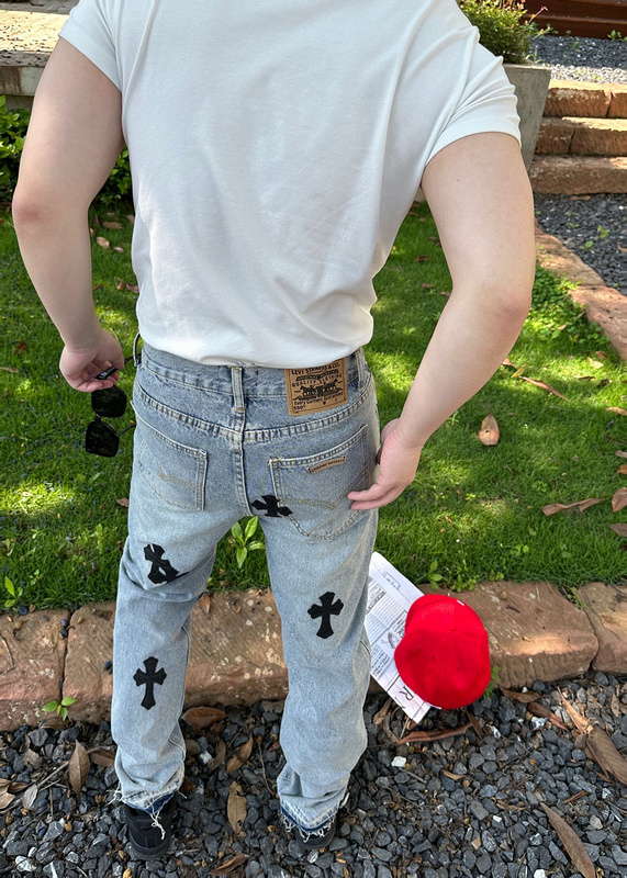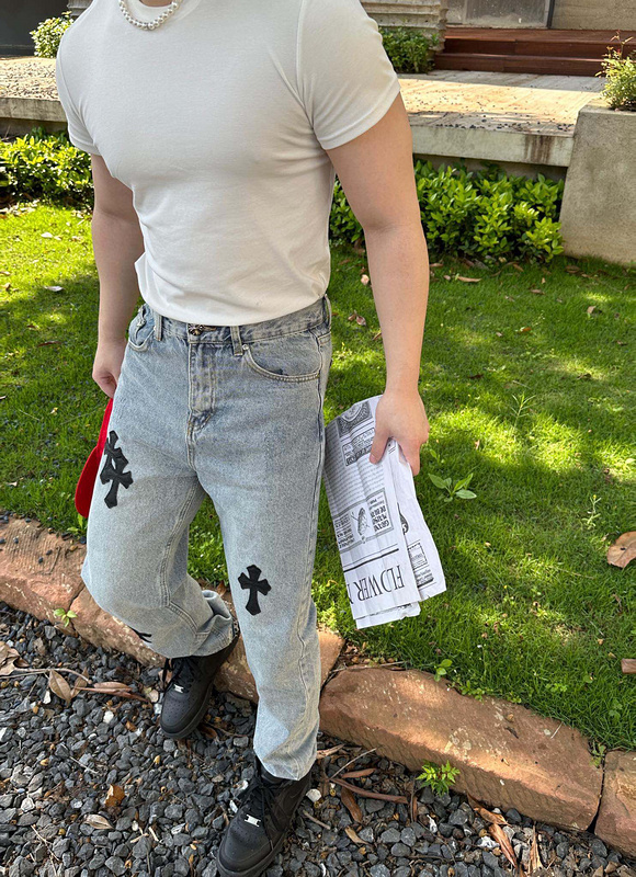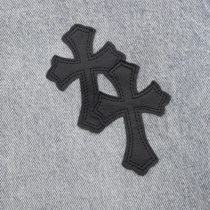 Chrome Hearts джинсы голубого цвета прямого кроя с принтом