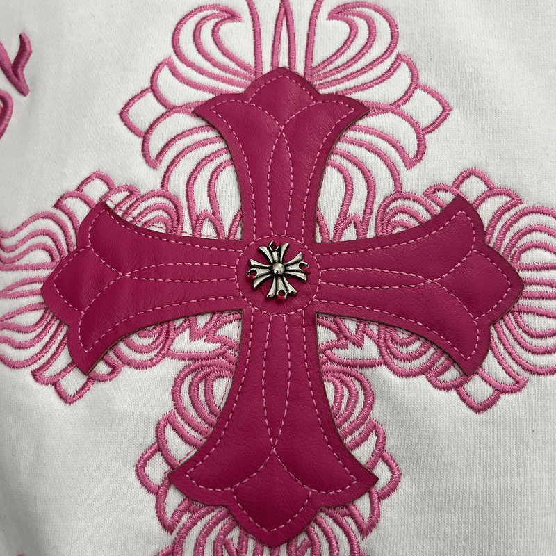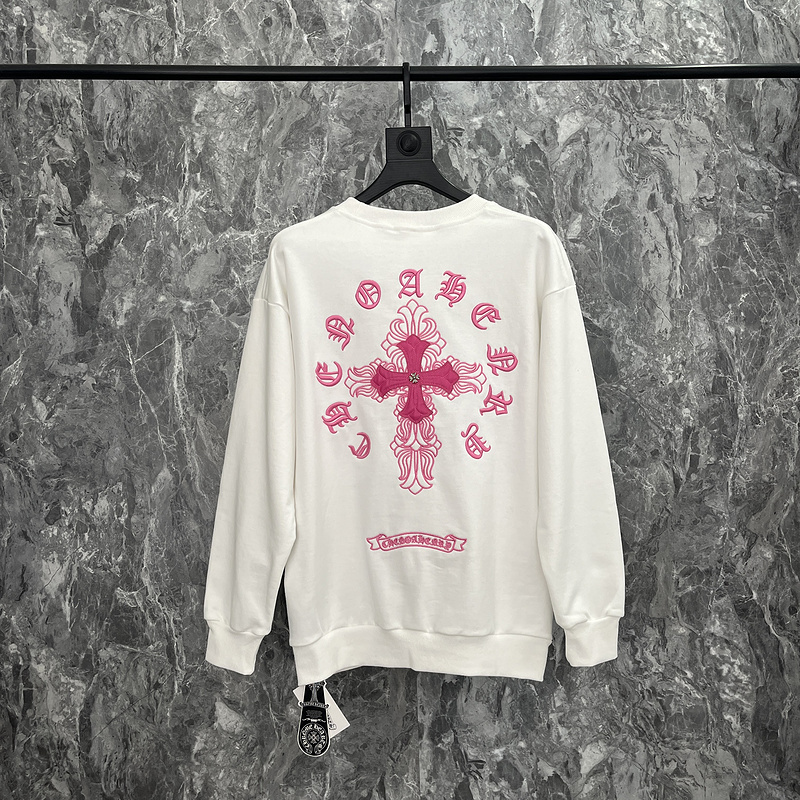 Chrome Hearts свитшот в белом цвете с вышитой надписью розового цвета