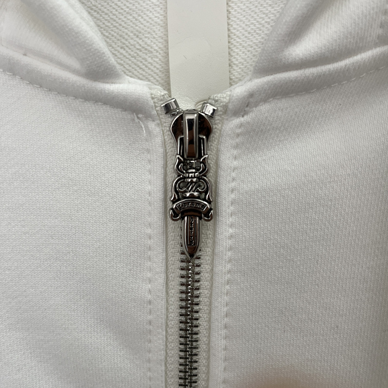 CHROME HEARTS зип худи в белом цвете с эластичными манжетами