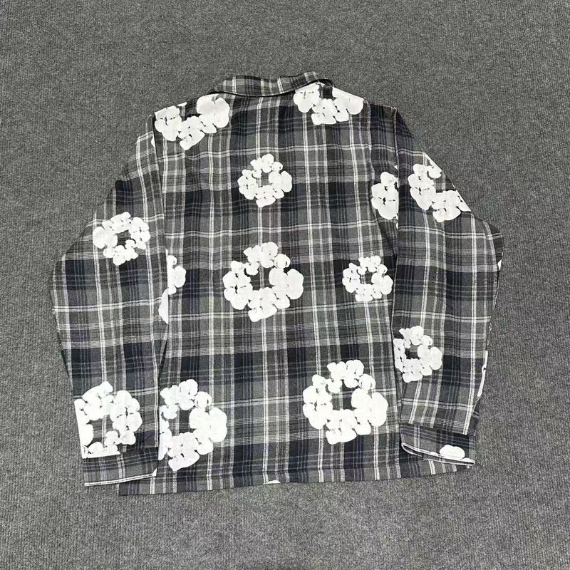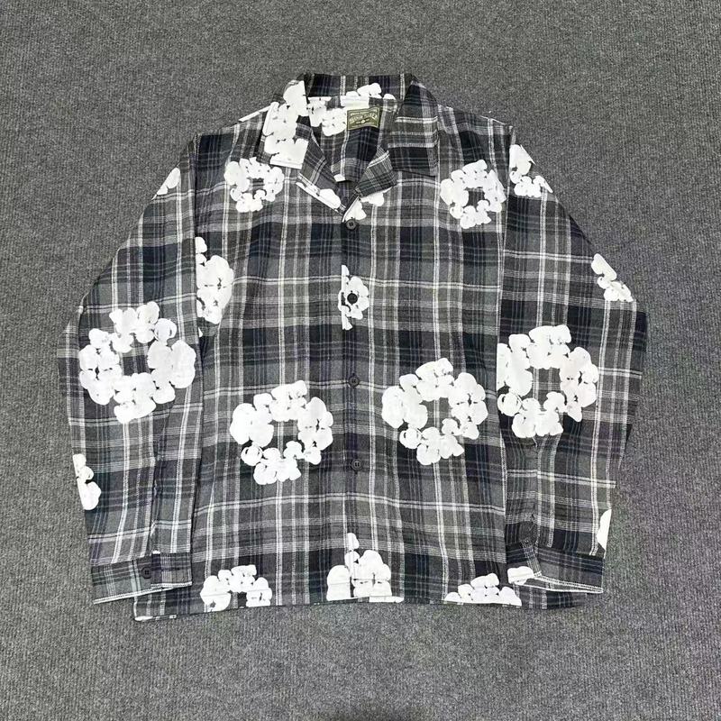 Denim Tears рубашка клетчатая в темно-сером цвете на пуговицах