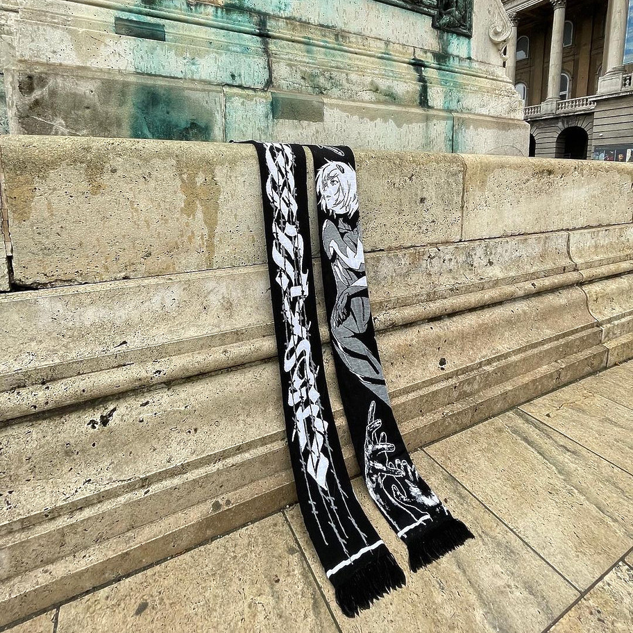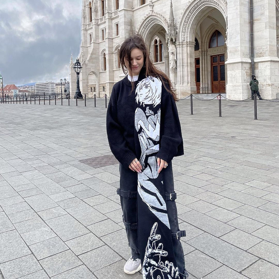 Длинный синтетический черный шарф с рисунком "Аниме"