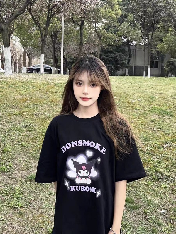 Donsmoke чёрная футболка с мультяшным принтом в стиле - Аниме
