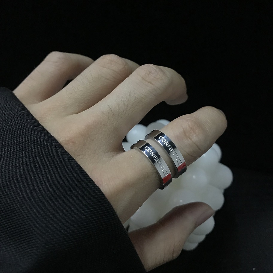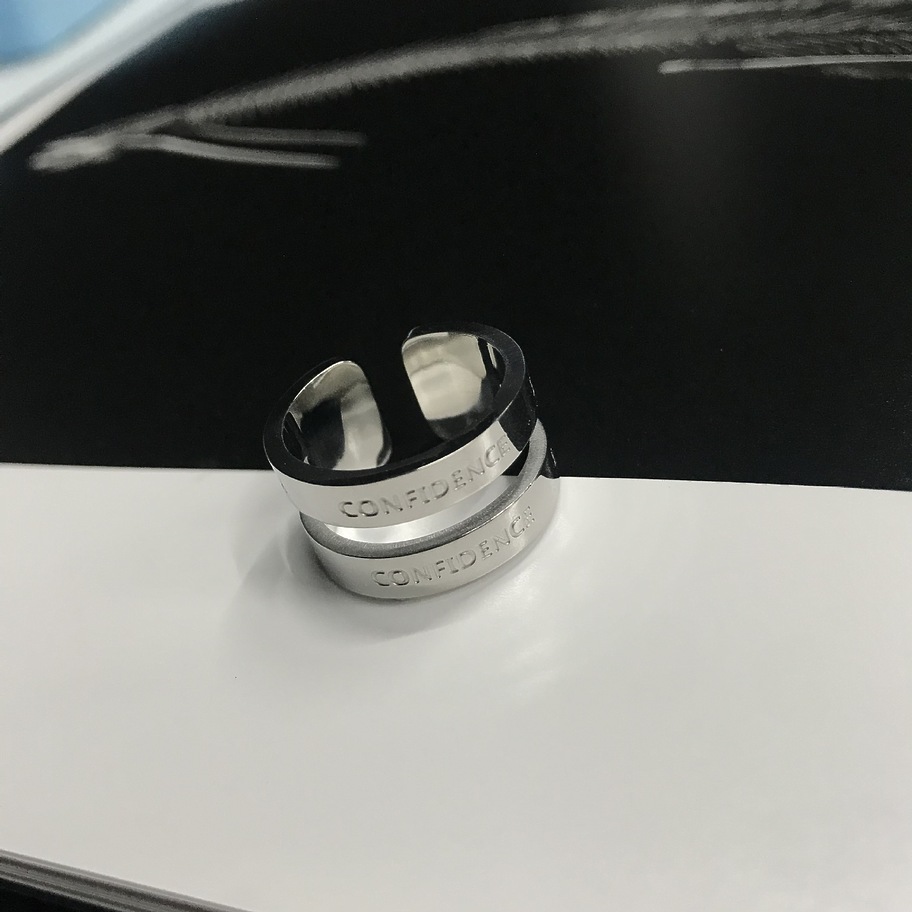 Двойное полое серебряное кольцо с надписью из качественного металла