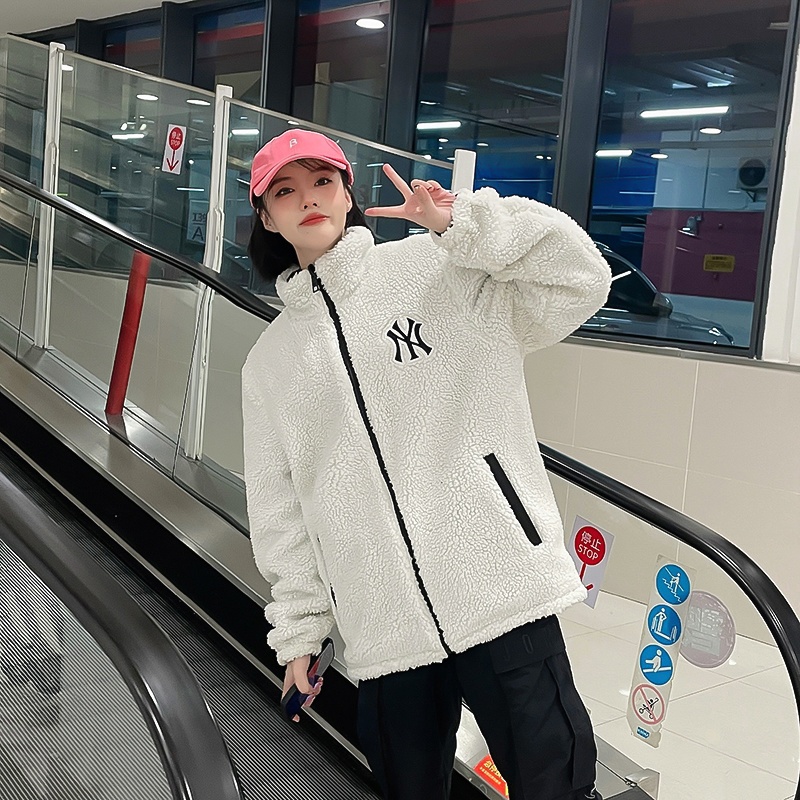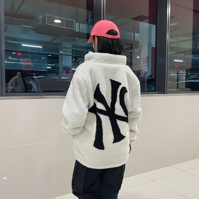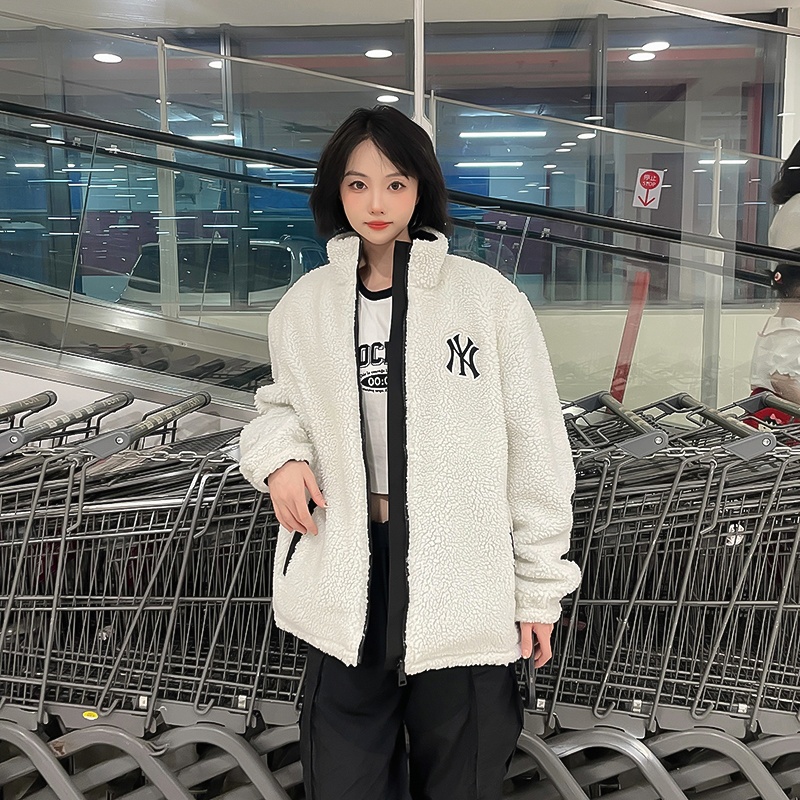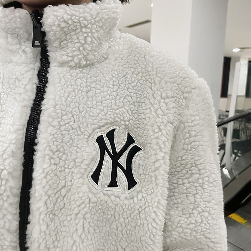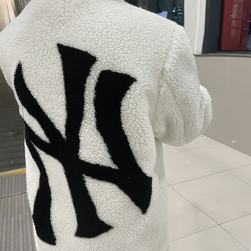 Двухстороння шерпа-куртка MLB белая с фирменным принтом на спине
