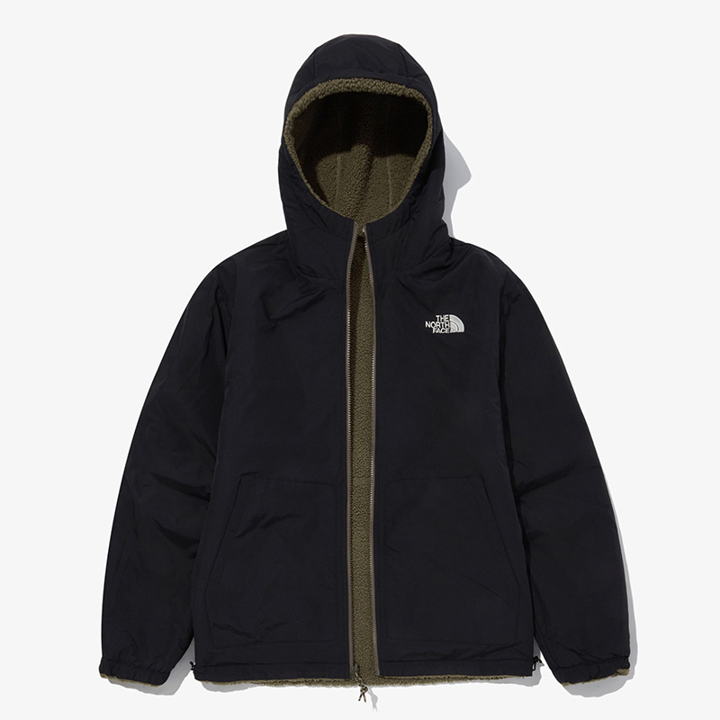 Двухстороння The North Face зелёная шерпа куртка с капюшоном
