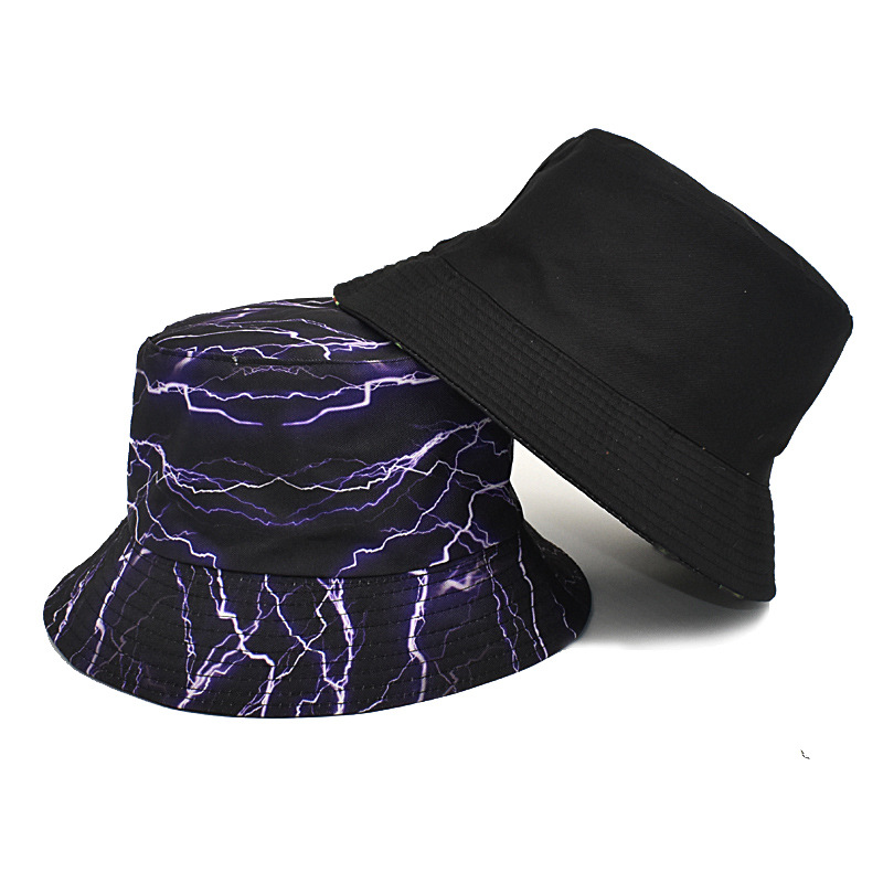 Двухсторонняя чёрная с принтом "Молния" хлопковая панамка