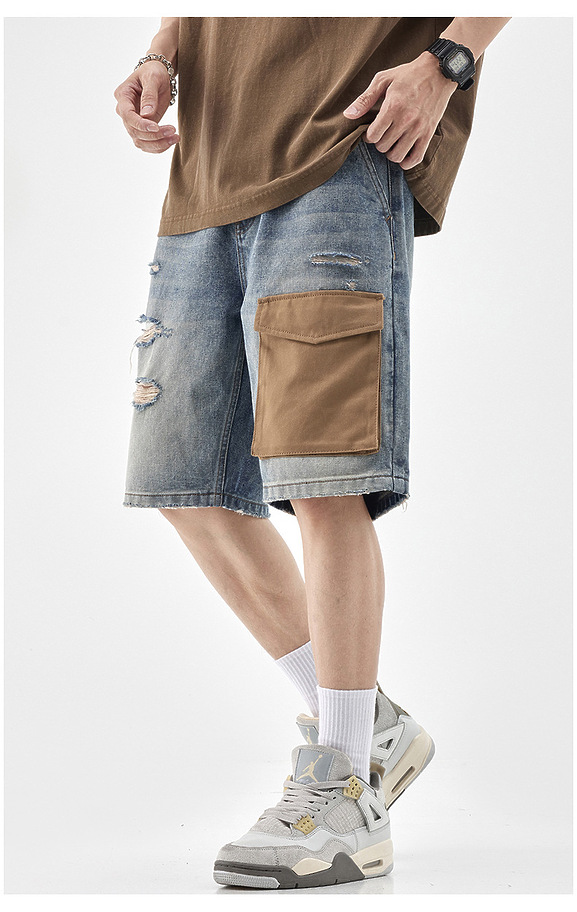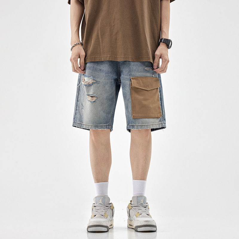 Джинсовые синие шорты Locketomy с нашитым бежевым карманом