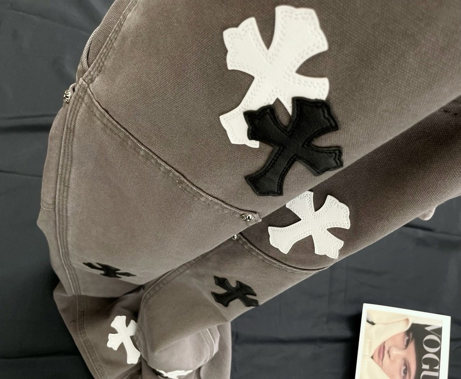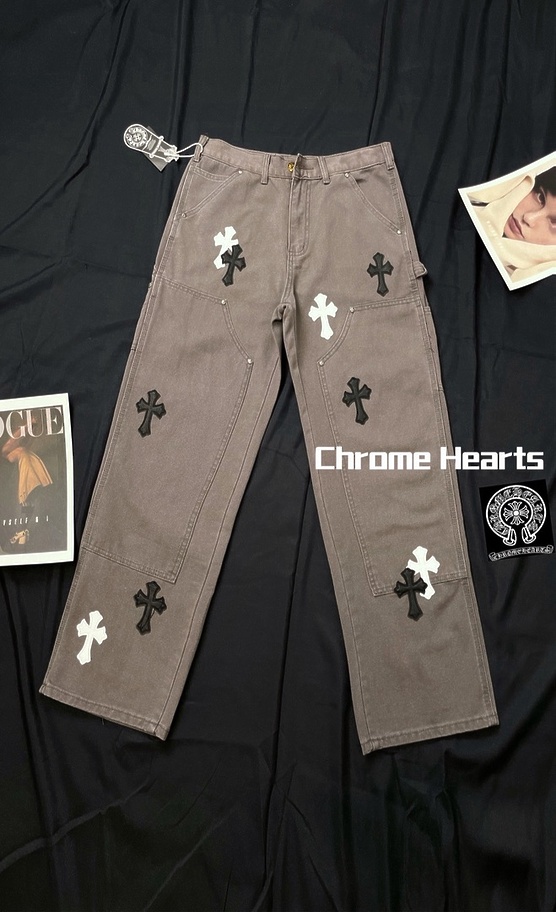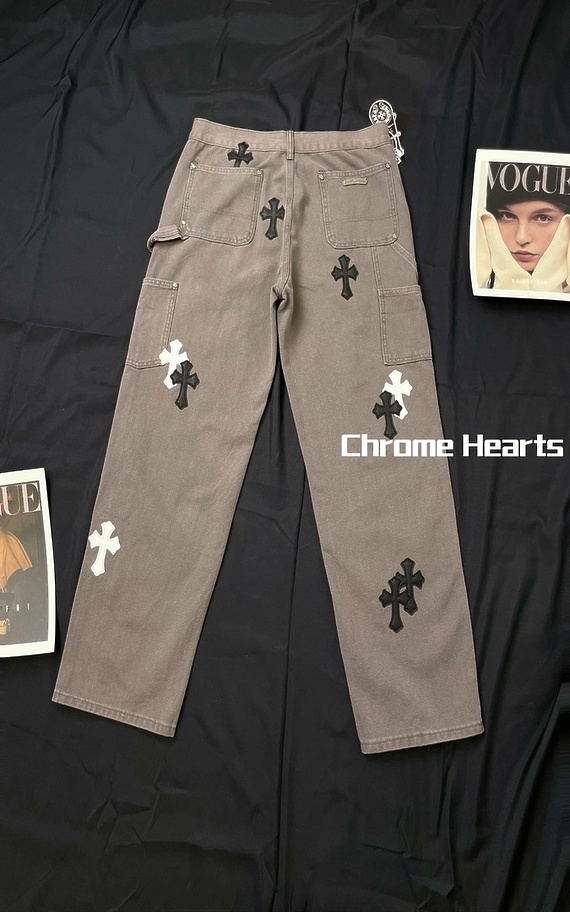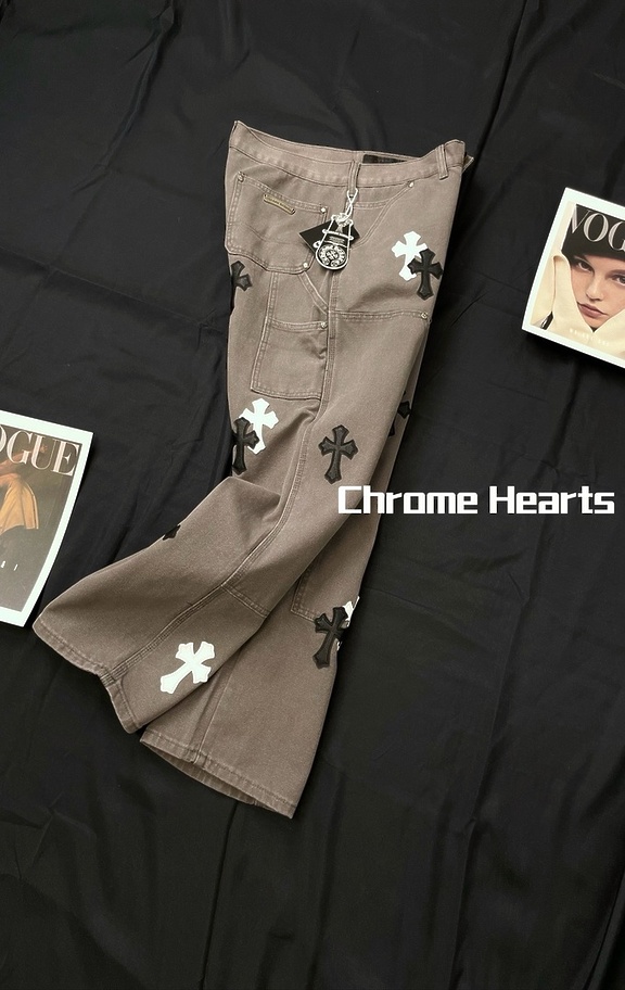 Джинсы бананы Chrome Hearts серо-коричневые с комфортной посадкой
