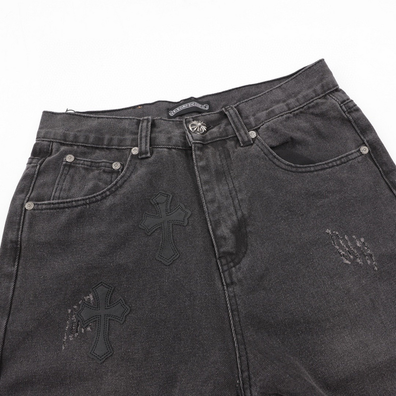 Джинсы Chrome Hearts черные с потертостями и рваными дырками