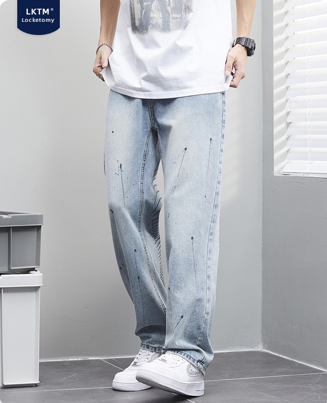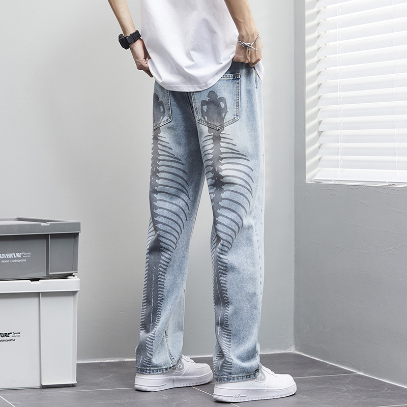 Джинсы Locketomy голубые с принтом "Скелет грудной клетки" сзади
