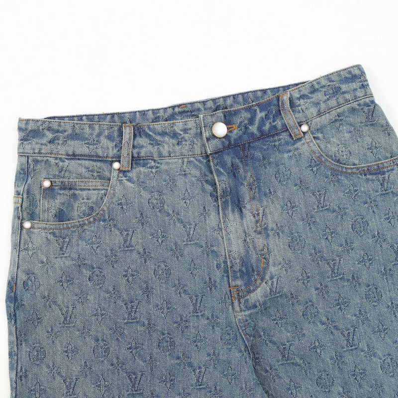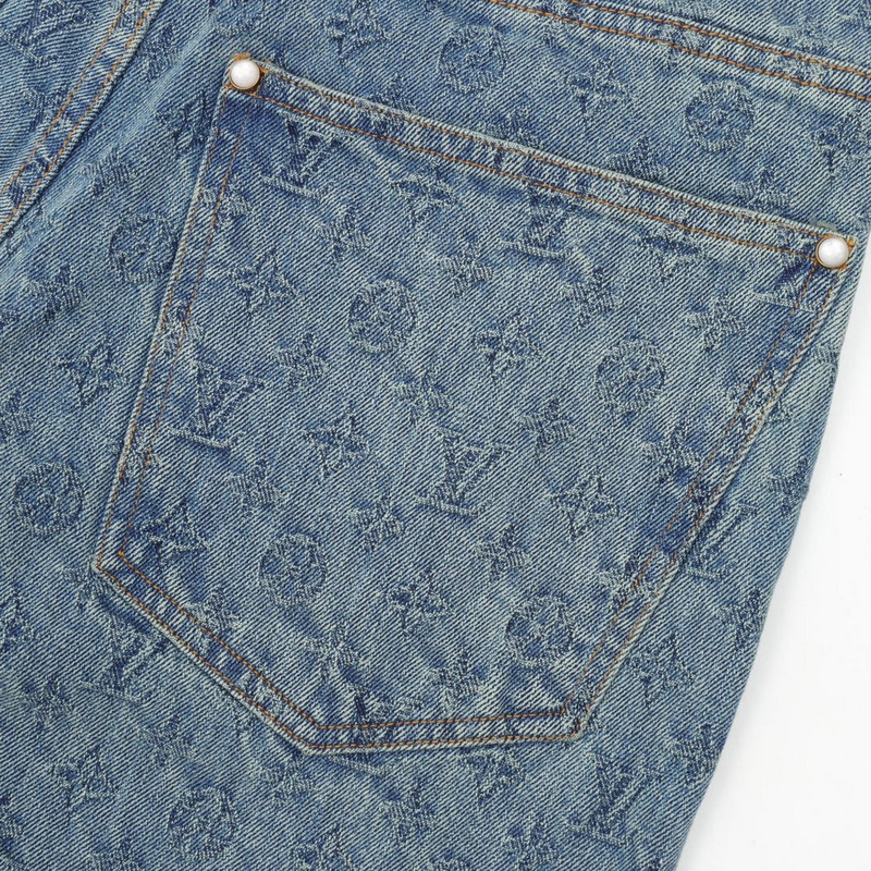 Джинсы Louis Vuitton в голубом цвете с выбитым логотипом бренда
