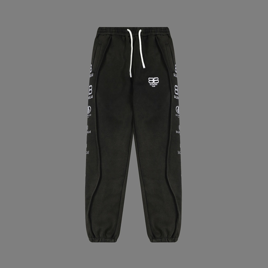 Джоггеры Balenciaga выполнены в черном цвете с белым принтом по бокам