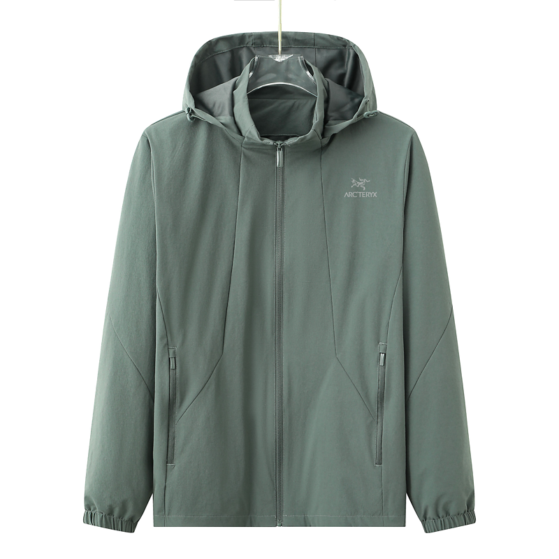 Эффектная модель куртки в зелёном цвете Arc'teryx с карманами