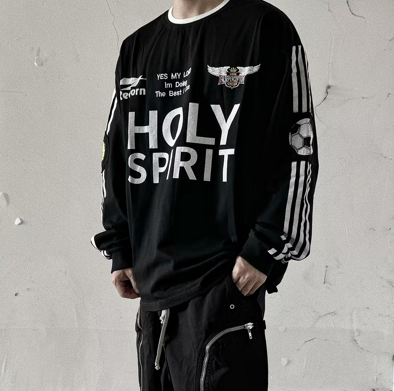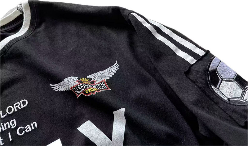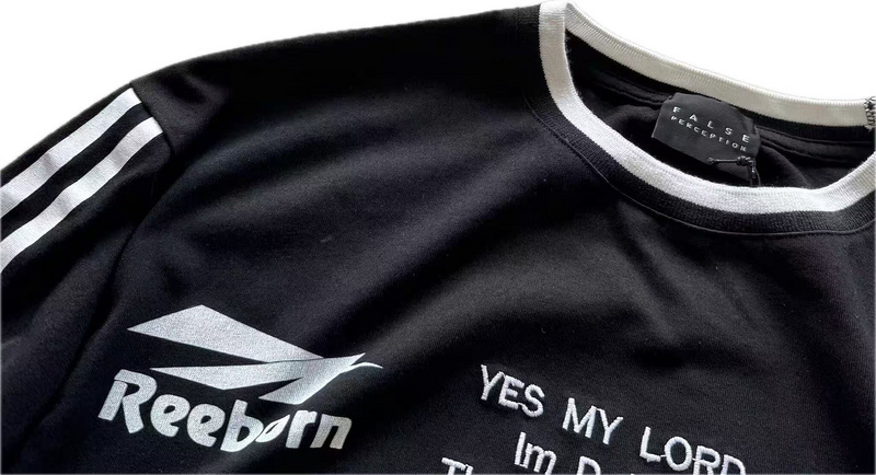 False Perception свитшот в черном цвете с белыми лампасами на рукавах