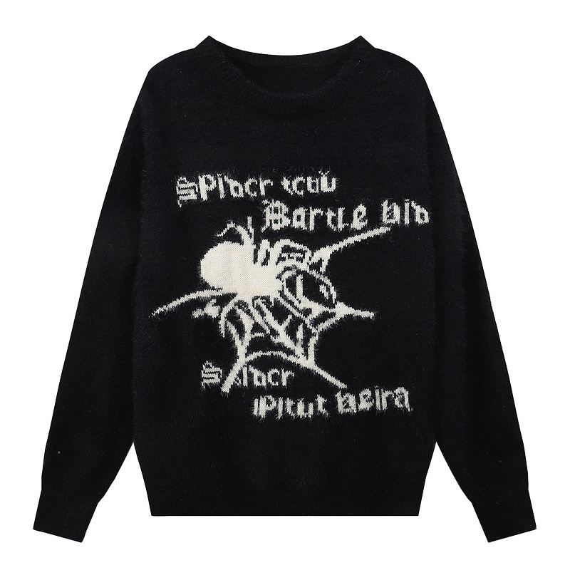Fashion эксклюзивный черный свитер с принтом большого паука