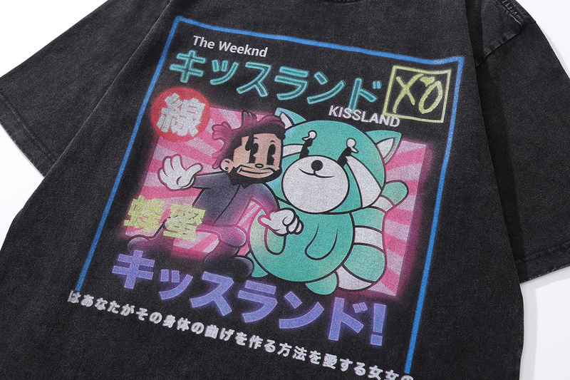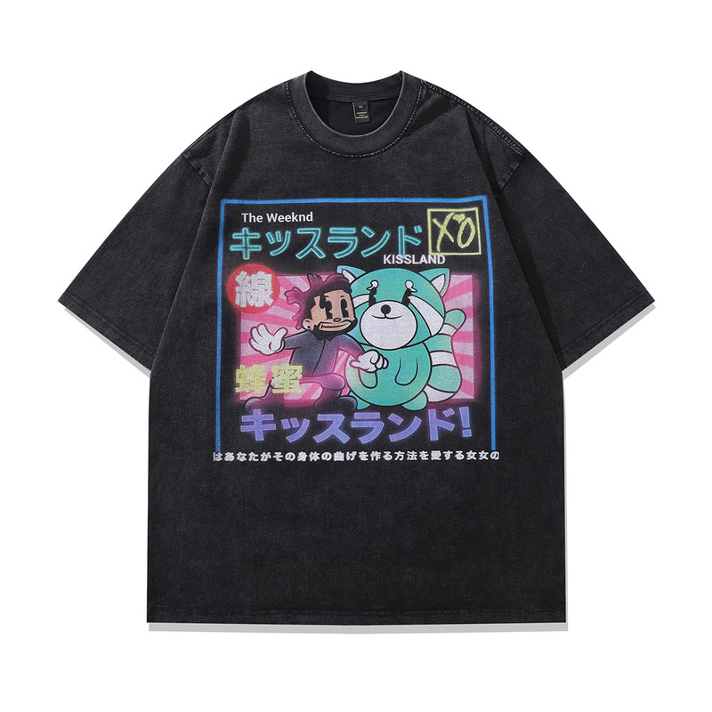Футболка аниме чёрная TKPA с коротким рукавом и круглым вырезом