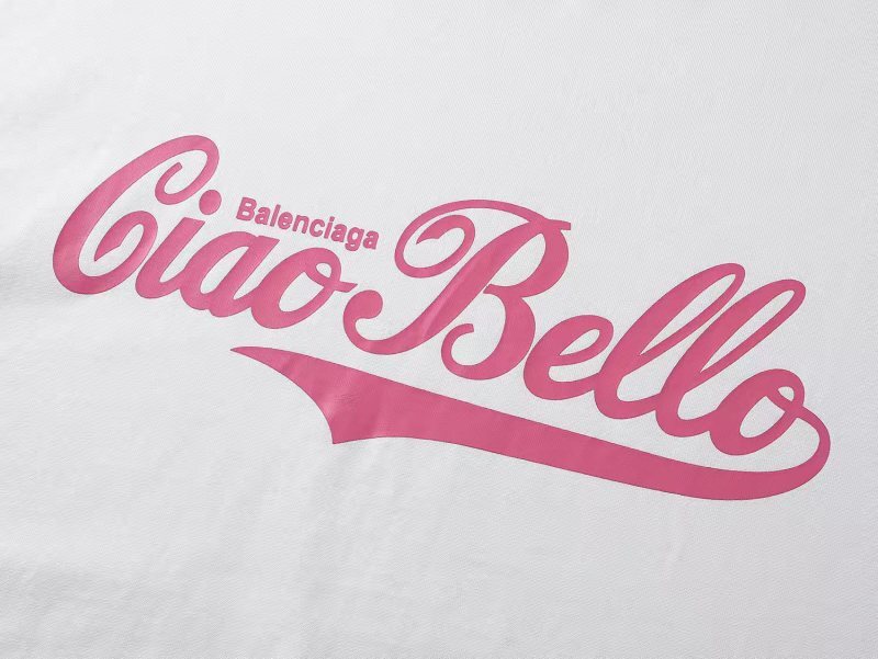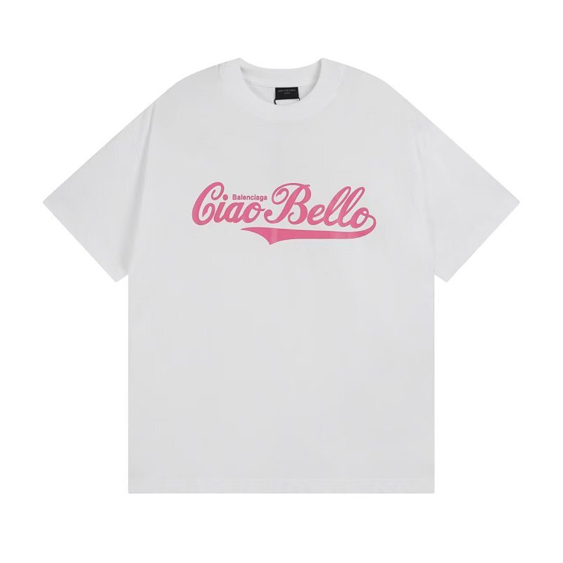 Футболка Balenciaga белого цвета с розовой надписью бренда